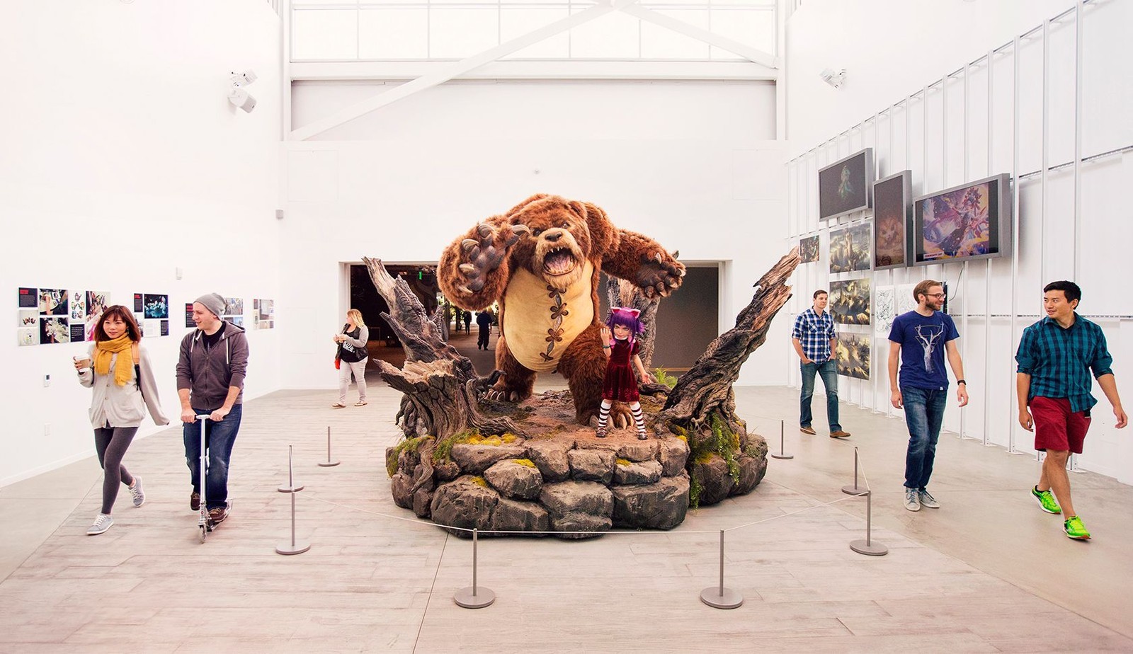 Personagens de videojogos nos escritórios da criadora de jogos em Los Angeles.