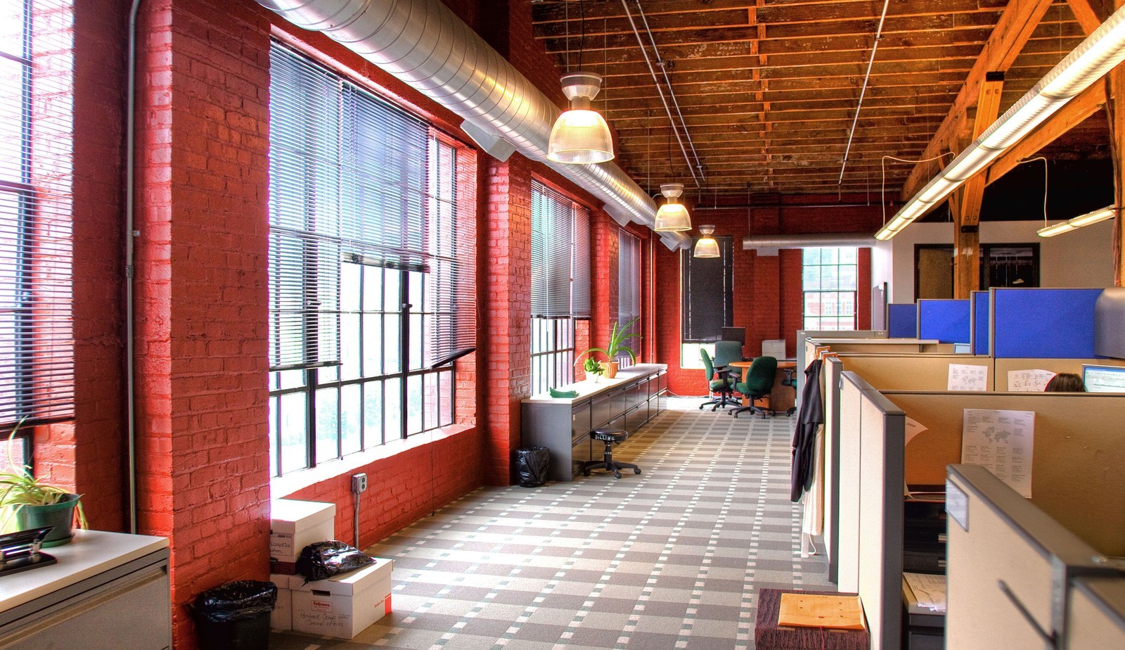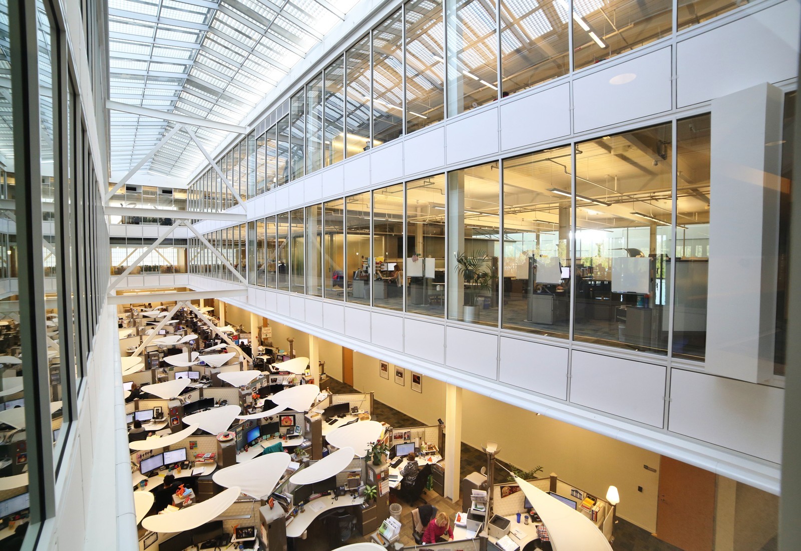 A luz natural ajuda a iluminar o escritório - aberto - de uma das maiores uniões de crédito do mundo.