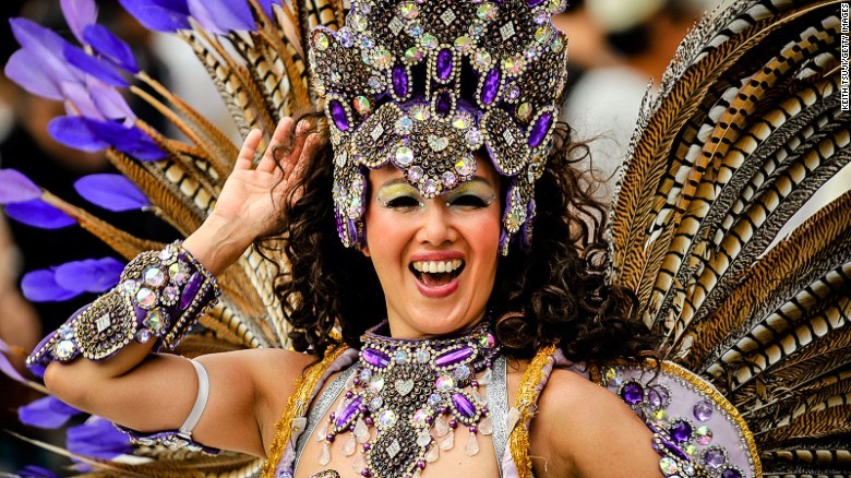 Um desfile ou parada de Carnaval representa um corte no trânsito – em lantejoulas.